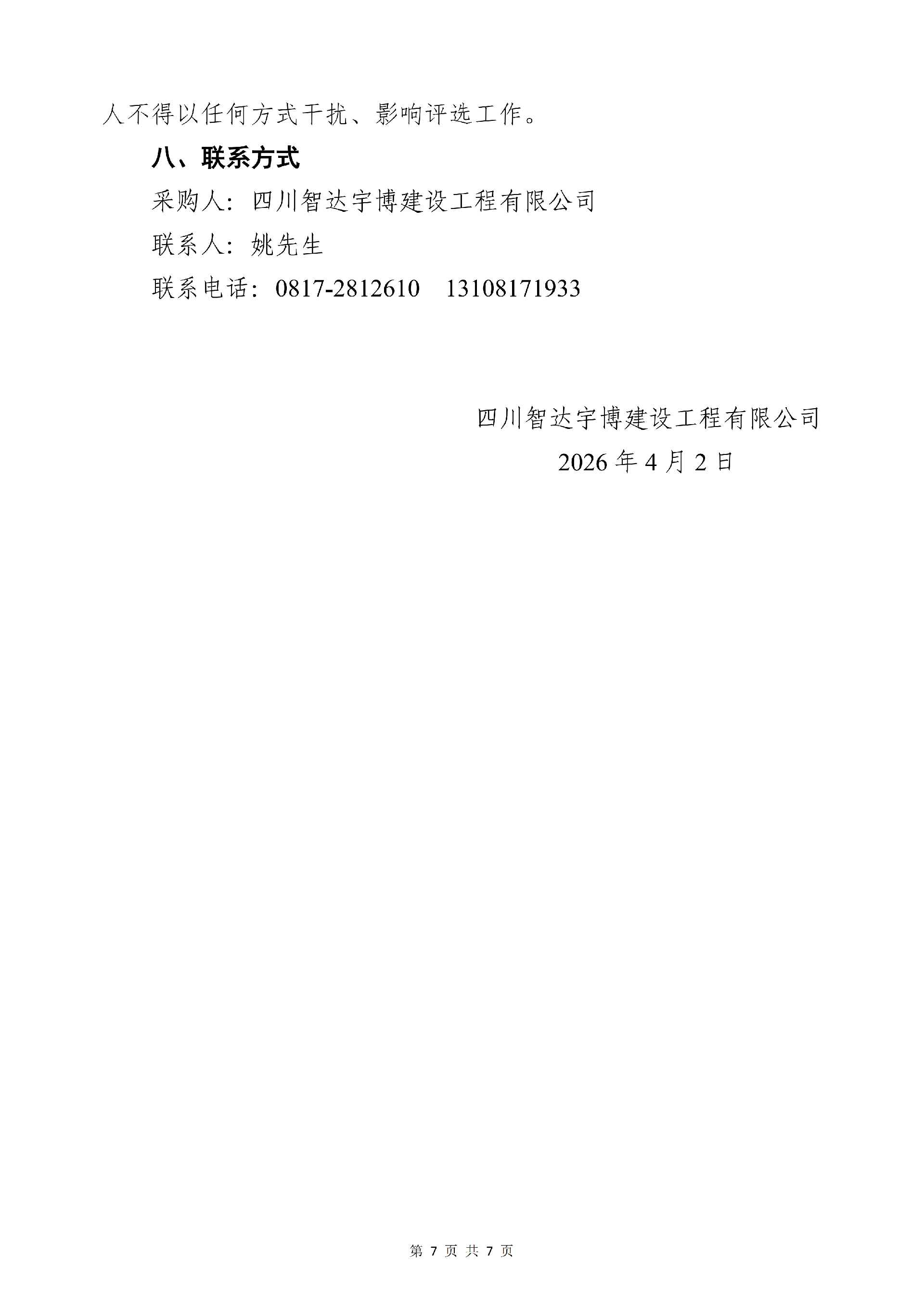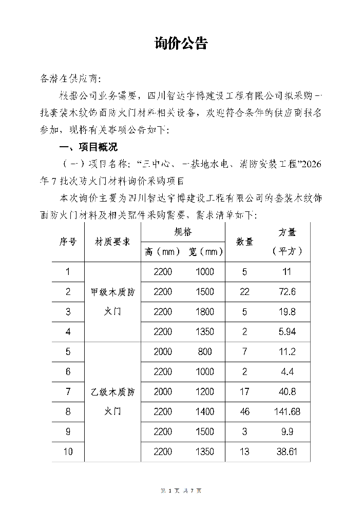 · 四川智达宇博建设工程有限公司“三中心、一基地水电、消防安装工程”2026年7批次防火门材料询价采购项目中止公告